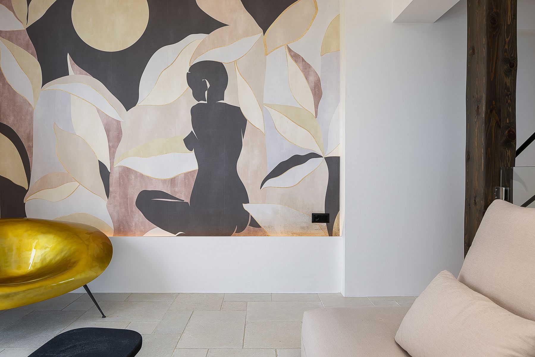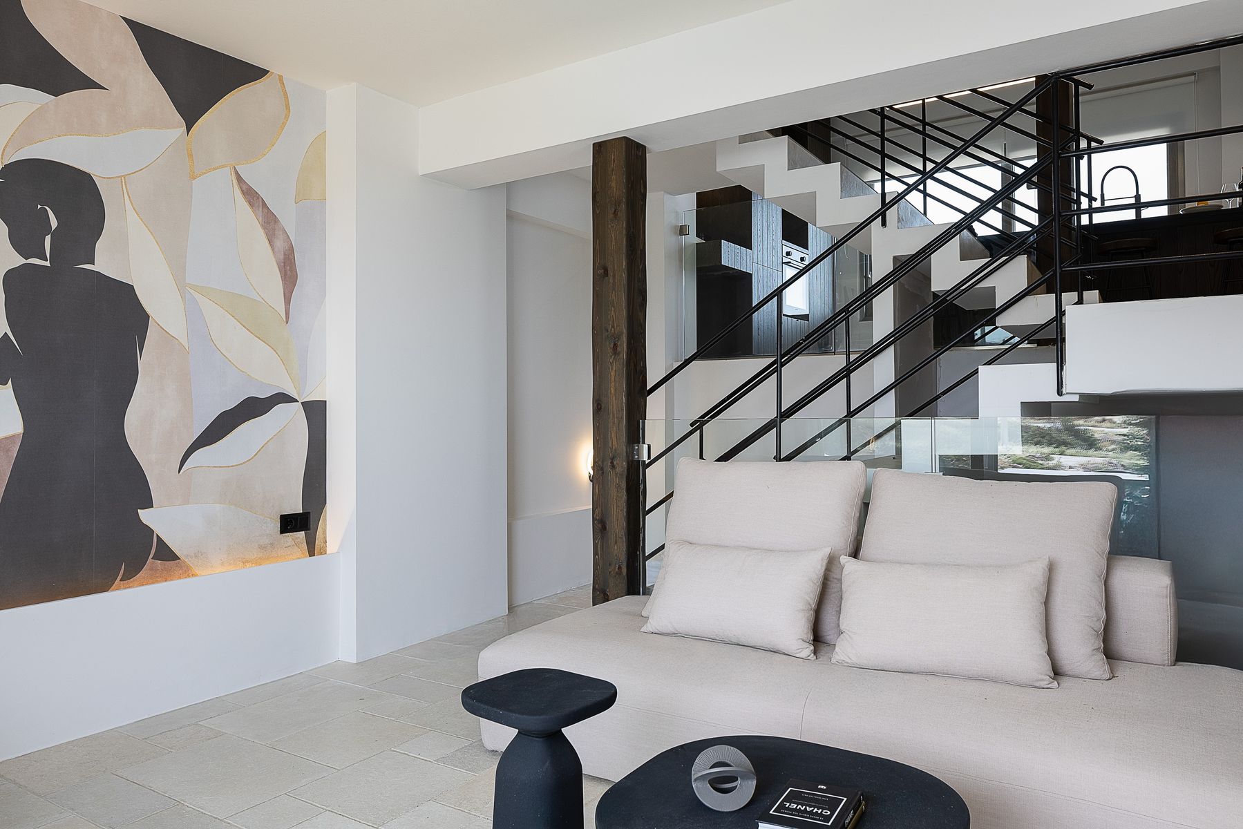 The villa spreads in three levels (including an attic bedroom) the villa’s interiors unfold